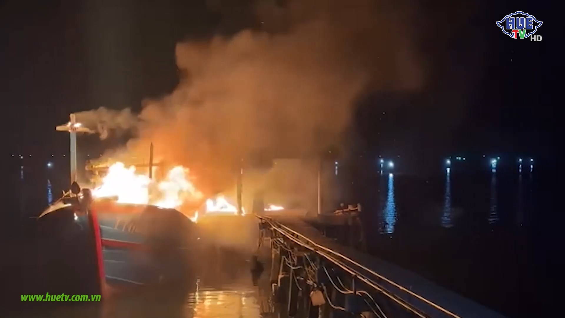 Cháy tàu cá trong đêm tại phường Thuận An