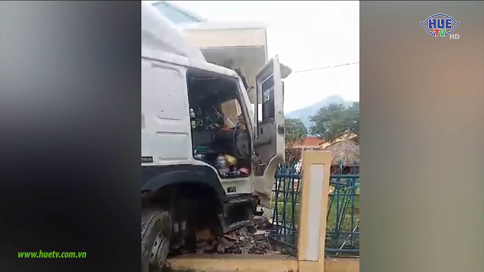 Xe đầu kéo mất lái tông sập tường trường học