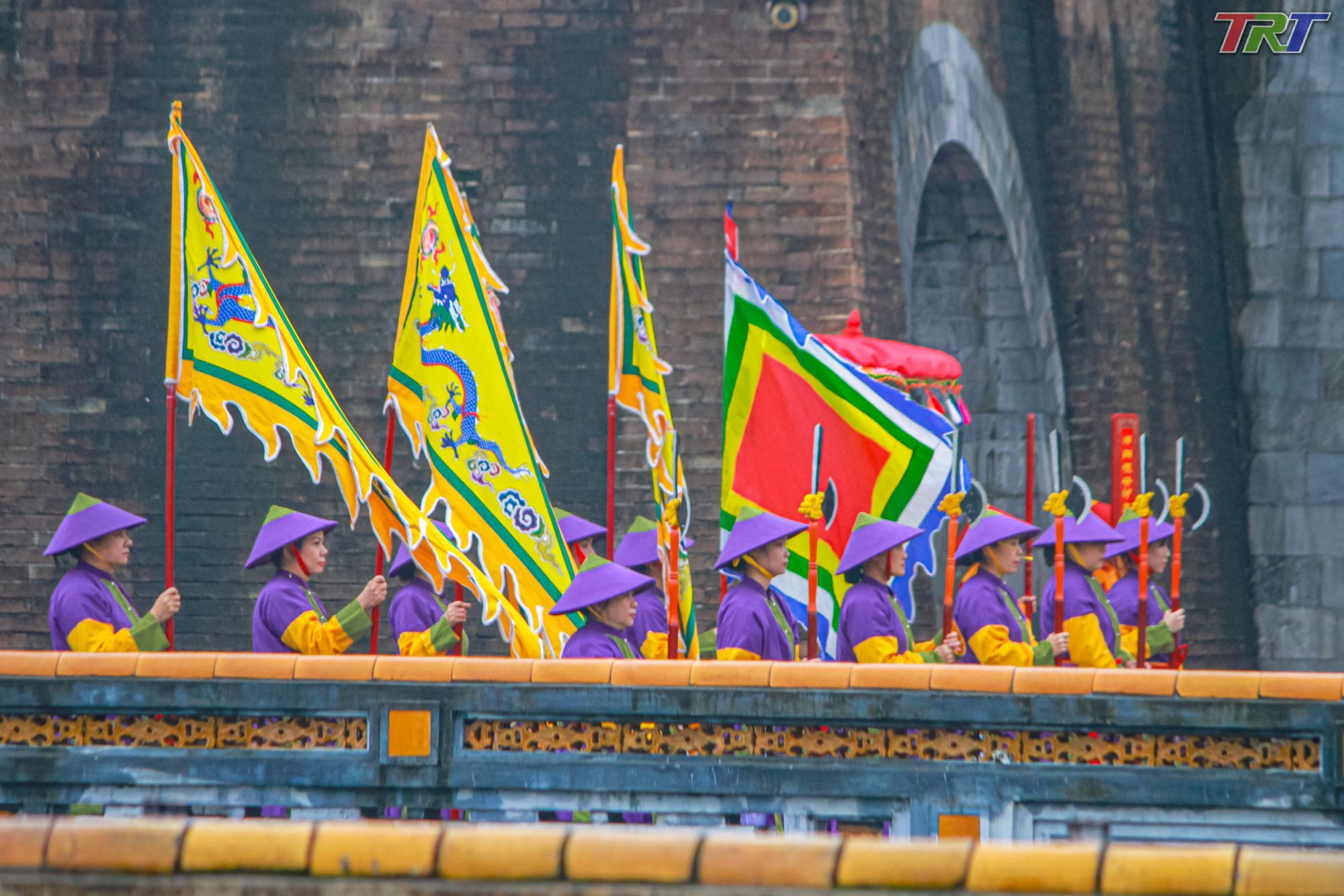 Cờ xí rợp trời khiến không khí lễ tái hiện thêm trang trọng