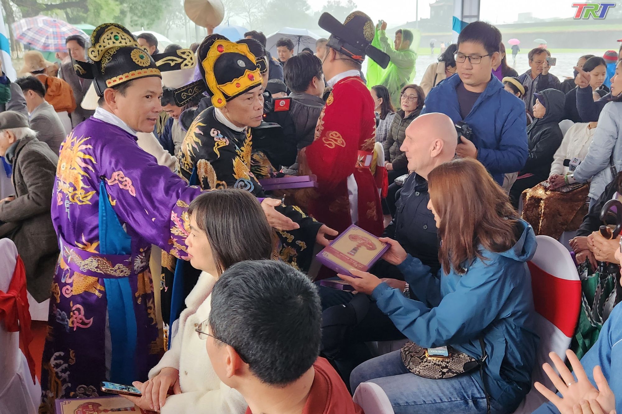 Du khách thích thú khi được tặng lịch