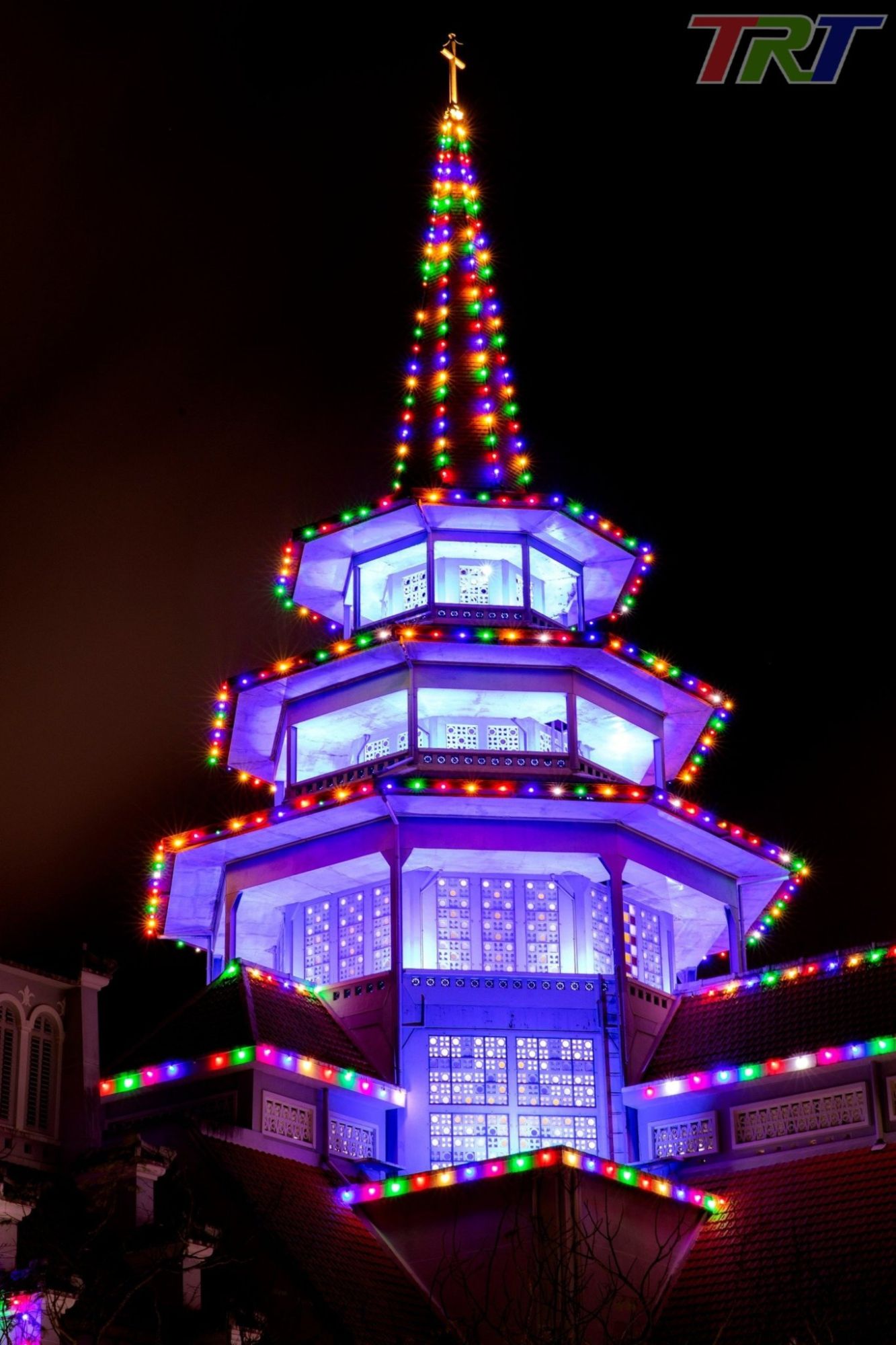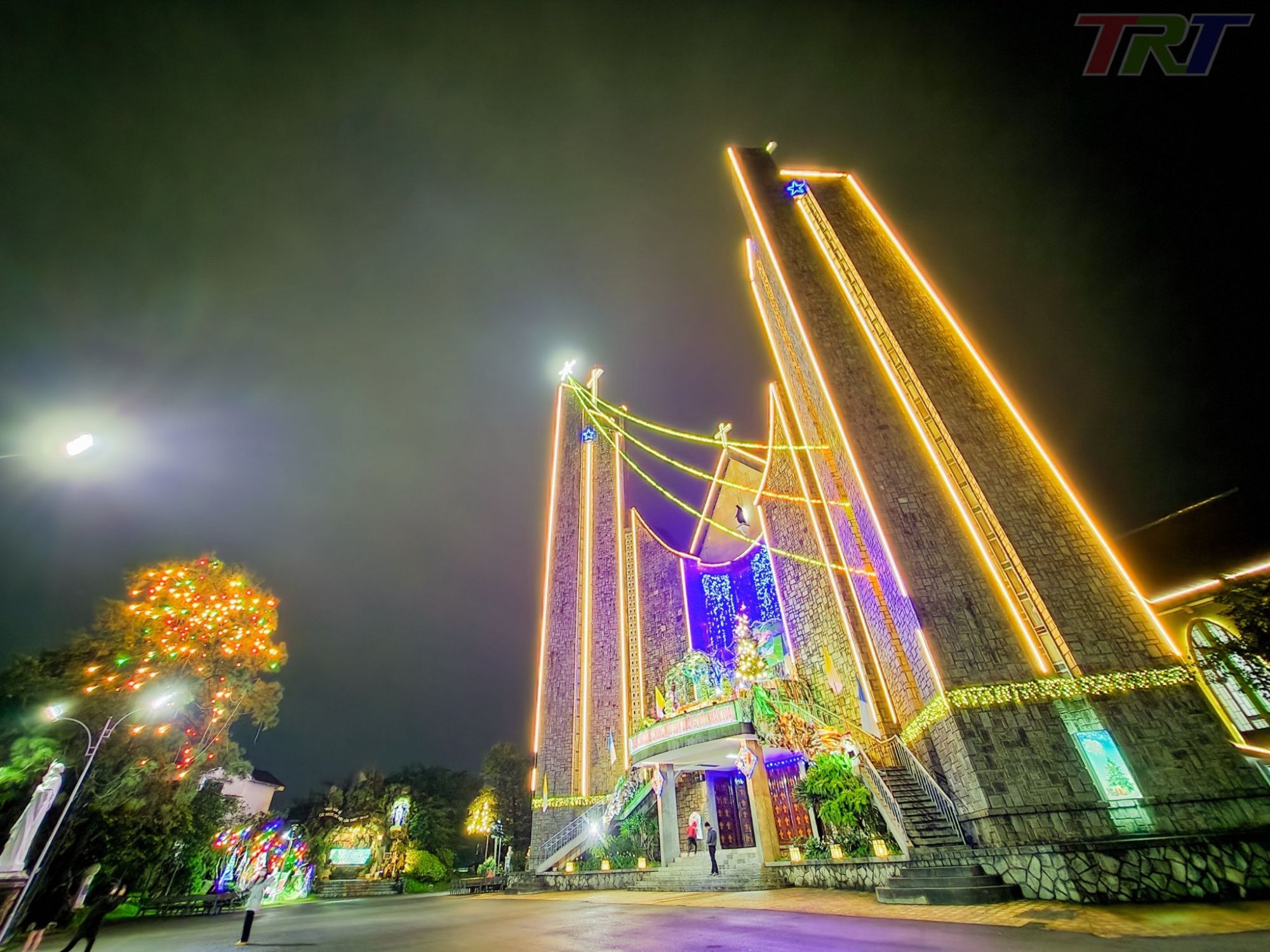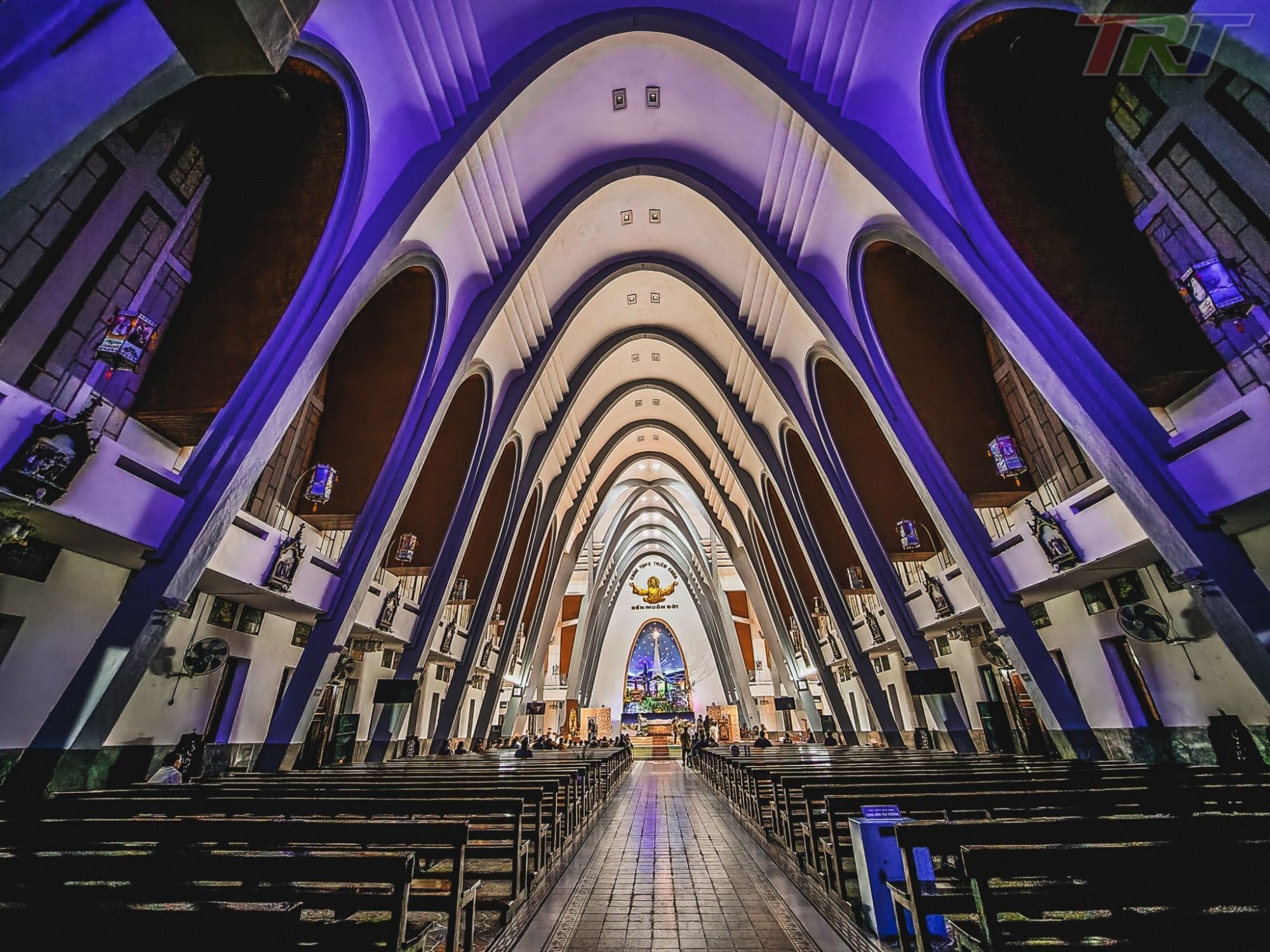 Không gian nhà thờ rực sáng trong ánh đèn