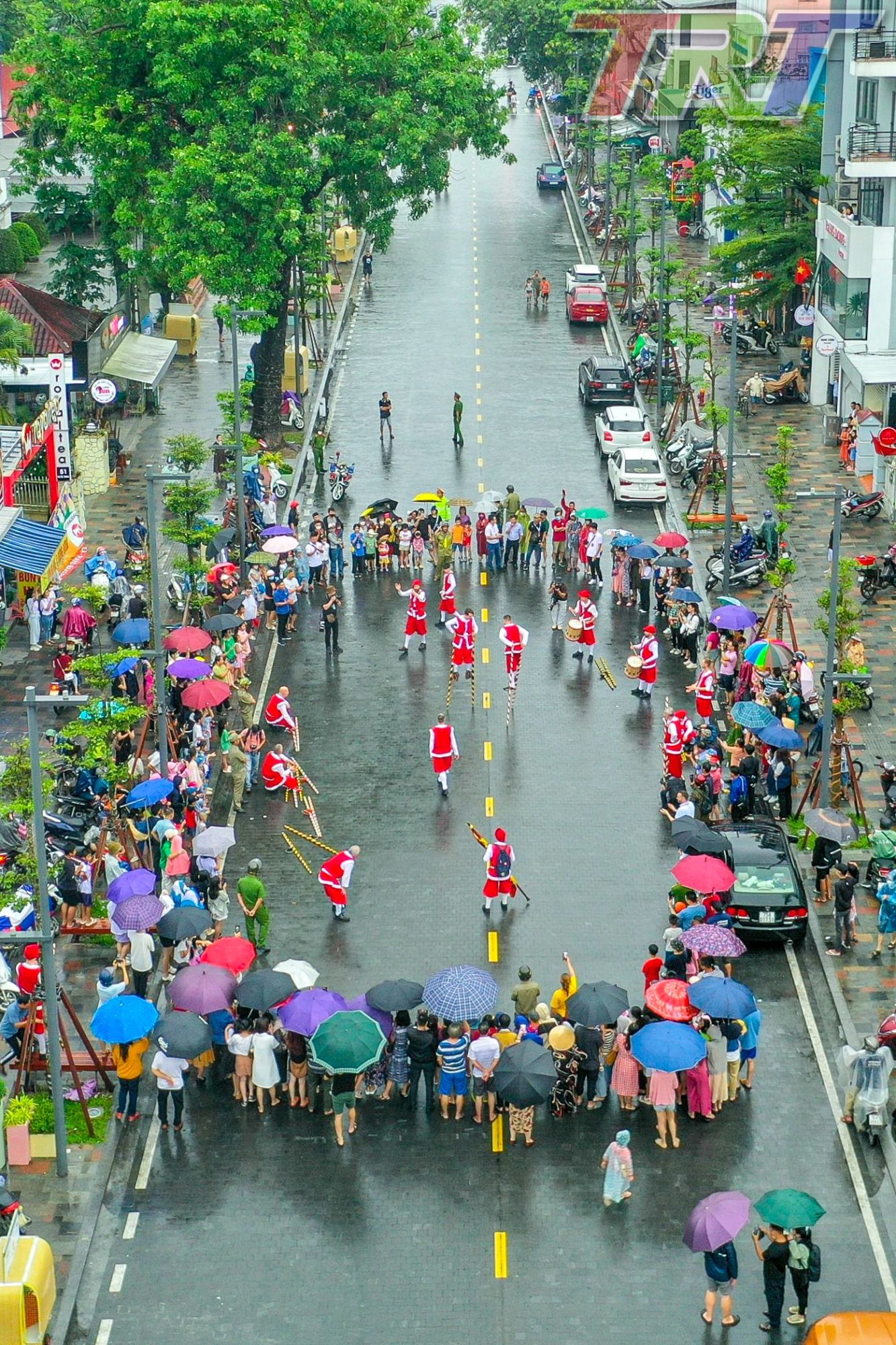 Một góc phố đi bộ đường Hai Bà Trưng náo nhiệt khi xuất hiện đoàn cà kheo